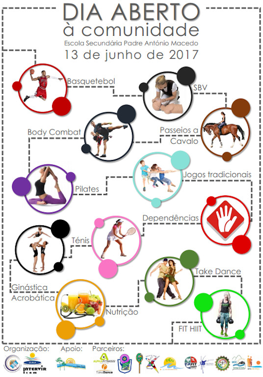 A UCC de Santiago do Cacém vai estar presente no “Dia Aberto” da Escola Secundária Padre António Macedo em Santo André no dia 13 de Junho de 2017 a partir das 9h. Num dia em que a escola abre portas não só para alunos mas também para os seus pais e a restante comunidade da cidade, será possível encontrar uma grande variedade de atividades acessíveis a todos os que as queiram experimentar, que invocam o desporto, a saúde, os hábitos de vida, o lazer e a diversão.