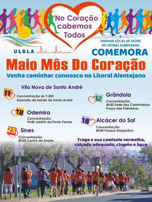 Como vem sendo habitual a ULSLA comemora Maio Mês do Coração com diversas atividades ao longo do mês, incluindo cinco caminhadas no Litoral Alentejano. Venha Caminhar Connosco
